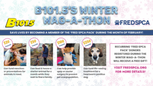 Join the FRED SPCA Pack This February! B101’s Winter Wag-a-Thon benefiting the Fredericksburg SPCA is happening February 1 – 28! You can become a monthly supporter