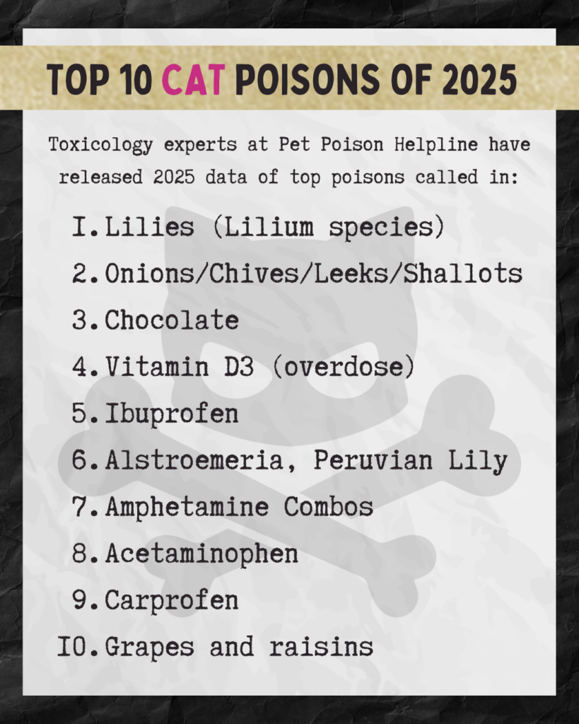 The Pet Poison Helpline recently released its 2025 update, highlighting the substances most often reported to its call center. Some familiar hazards stayed on the list, while a few new villains entered the chat. It’s important to remember that the most reported items are not always the most toxic. Some substances can do far more damage to pets than others. So if you suspect your pet has ingested something harmful, the Pet Poison Helpline can be lifesaving. This 24/7 service charges an $89 incident fee and provides advice for pet owners and veterinarians dealing with potentially poisoned animals. The helpline is triple-licensed and staffed with specialists in multiple veterinary fields, including board-certified toxicologists. They maintain a large database of household and commercial products, assess the risk to your pet, provide home treatment guidance, or recommend an emergency veterinary visit. They also follow up with veterinarians to ensure pets receive the best care. The helpline is available in North America at 800-213-6680, and more information, including a chat feature, is available online at www.petpoisonhelpline.com.